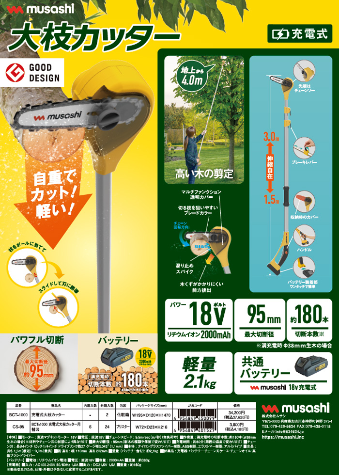 ムサシ BCT-1000 充電式大枝カッター BCT1000 |