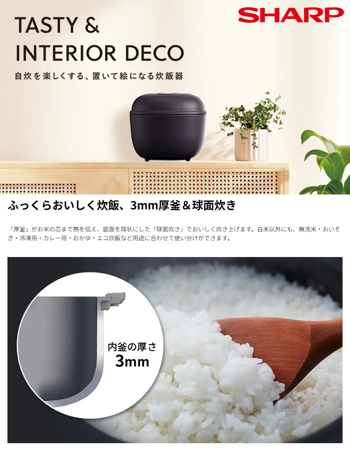 シャープ KSCS05J-W ジャー炊飯器 3mm厚釜&球面炊き 3合炊き ホワイト KSCS05J |