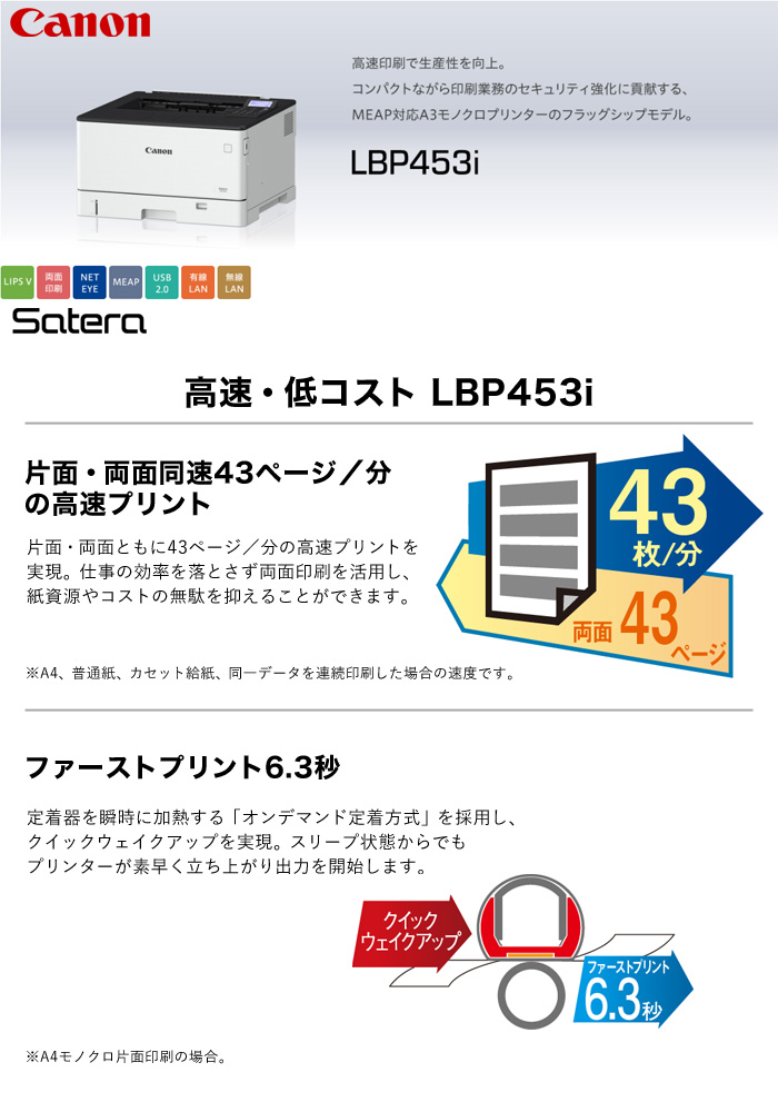 キャノン LBP453i A3モノクロレーザープリンター Satera(サテラ) |