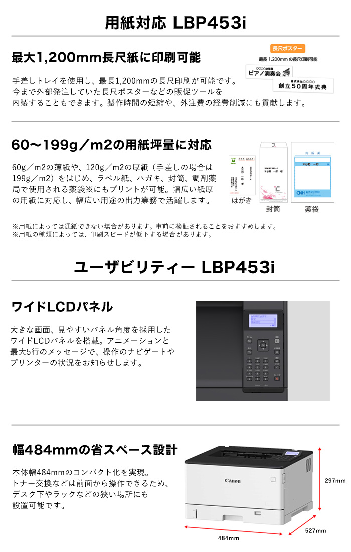 | LBP241 A4モノクロレーザープリンター | LBP244 A4モノクロレーザープリンター | LBP453i A3モノクロレーザープリンター |