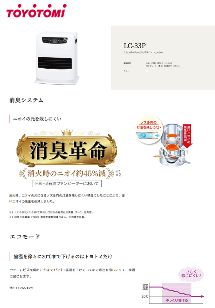 トヨトミ LC-33P 石油ファンヒーター 静音タイプ エコモード搭載 木造9畳まで コンクリート12畳まで ホワイト |