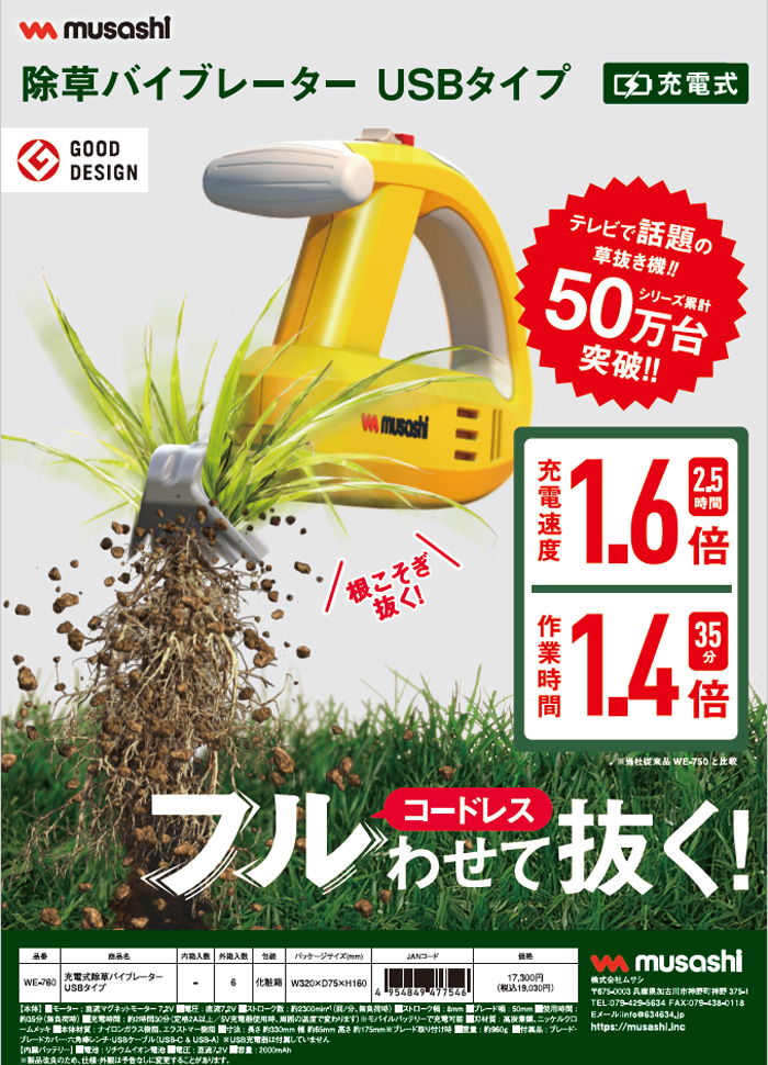 ムサシ WE-760 USB充電式除草バイブレーター コードレス WE760 |