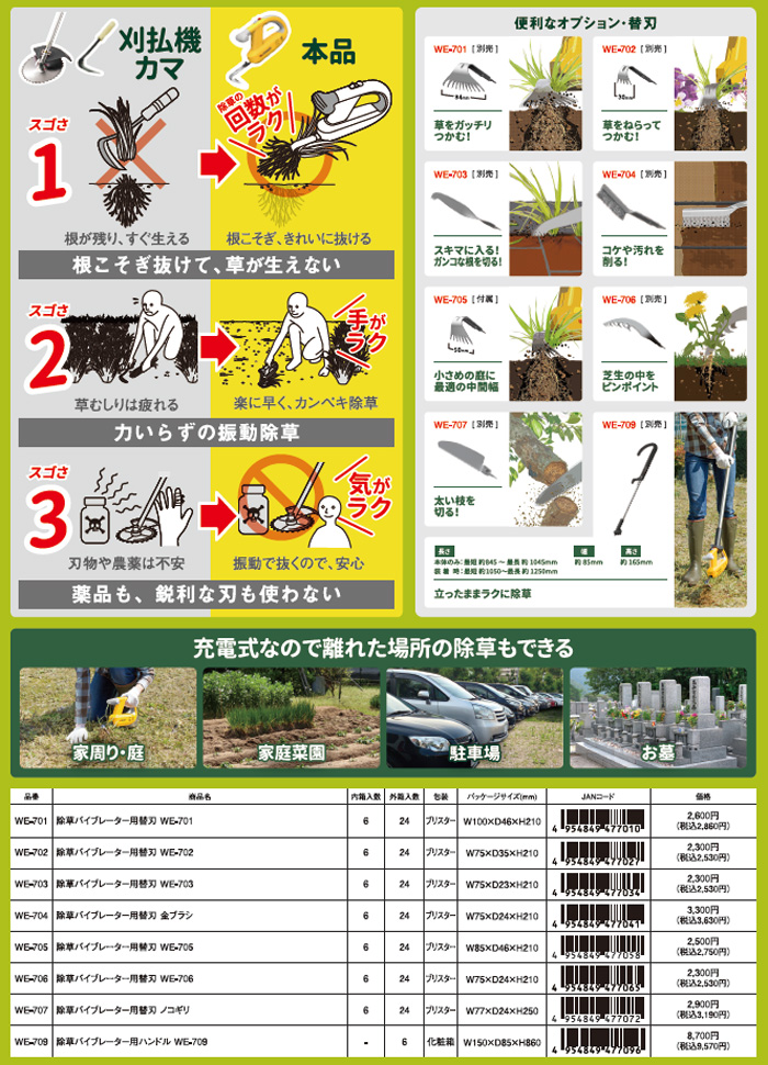 | WE-760 USB充電式 除草バイブレーター コードレス |