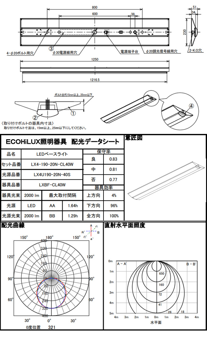 IRIS OHYAMA アイリスオーヤマ ラインルクス LX4-190-20N-CL40W ユニット品番:LX4U190-20N-40S 器具品番:LXBF-CL40W 直付型/非調光/40形/幅230 昼白色/Ra83 屋内向けベース照明 ●器具光束:2000lm ●消費電力:10.9W~11.5W ●定格電圧:AC100-242V ●サイズ:W230×D(L)1250×H51mm ●質量:2,200g ●色温度:5000K ●演色性評価数:Ra83 ●消費効率:173.9lm/W ●材質:〈本体〉鋼板〈カバー〉ポリカーポネート、アルミニウム ●動作環境温度:5℃~35℃ ●電源ユニット内蔵 ●寿命:約40,000時間(光束維持率85%) ※沖縄・離島一部指定地域への送料はお見積りとなります。 お気軽にお問合せください |