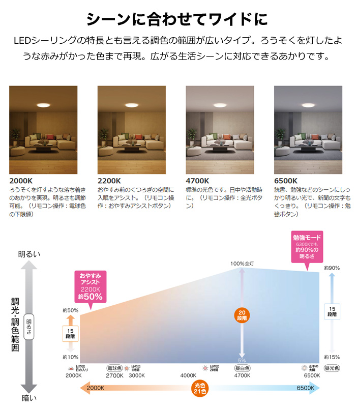 東芝 NLEH12047E-LC LEDシーリングライト 12畳 調光/調色/タイマー機能搭載 発売日:2025年8月1日 ●メーカー:東芝 TOSHIBA ●型番:NLEH12047E-LC ●適用畳数:~12畳 ●光色:調色対応(電球色~昼光色) ●リモコン:有 ●固有エネルギー消費効率:124.1lm/W(5.499lm・44.3W) ●色温度:電球色(2000K)~昼光色(6500K) ●常夜灯:有(6段階調光) ●調光機能:有(5%~100%・全灯時) ●タイマー機能:有(ON/OFFタイマー・ゆっくりおやすみタイマー/30分・60分) ●寸法:径φ585mm×高さ105mm ●質量:2.0kg JAN:4580625133650 ※沖縄・離島一部指定地域への配送は別途お見積りとなります。 ぜひお気軽にお問合せください |
