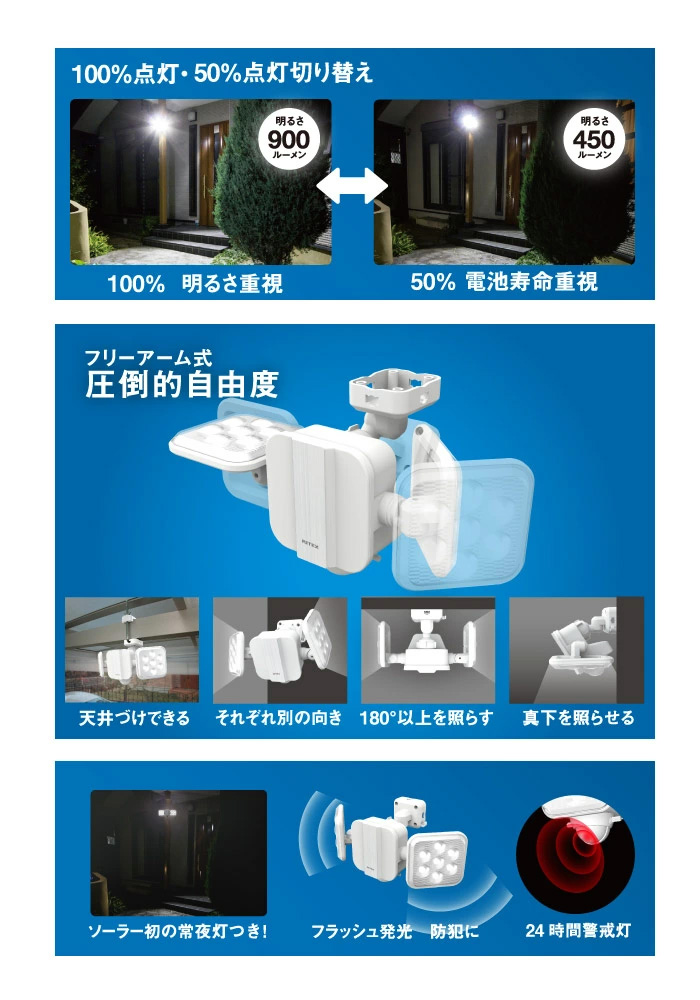 ライテックス LEDセンサーライト 5W×2灯 フリーアーム式 ソーラー式 |